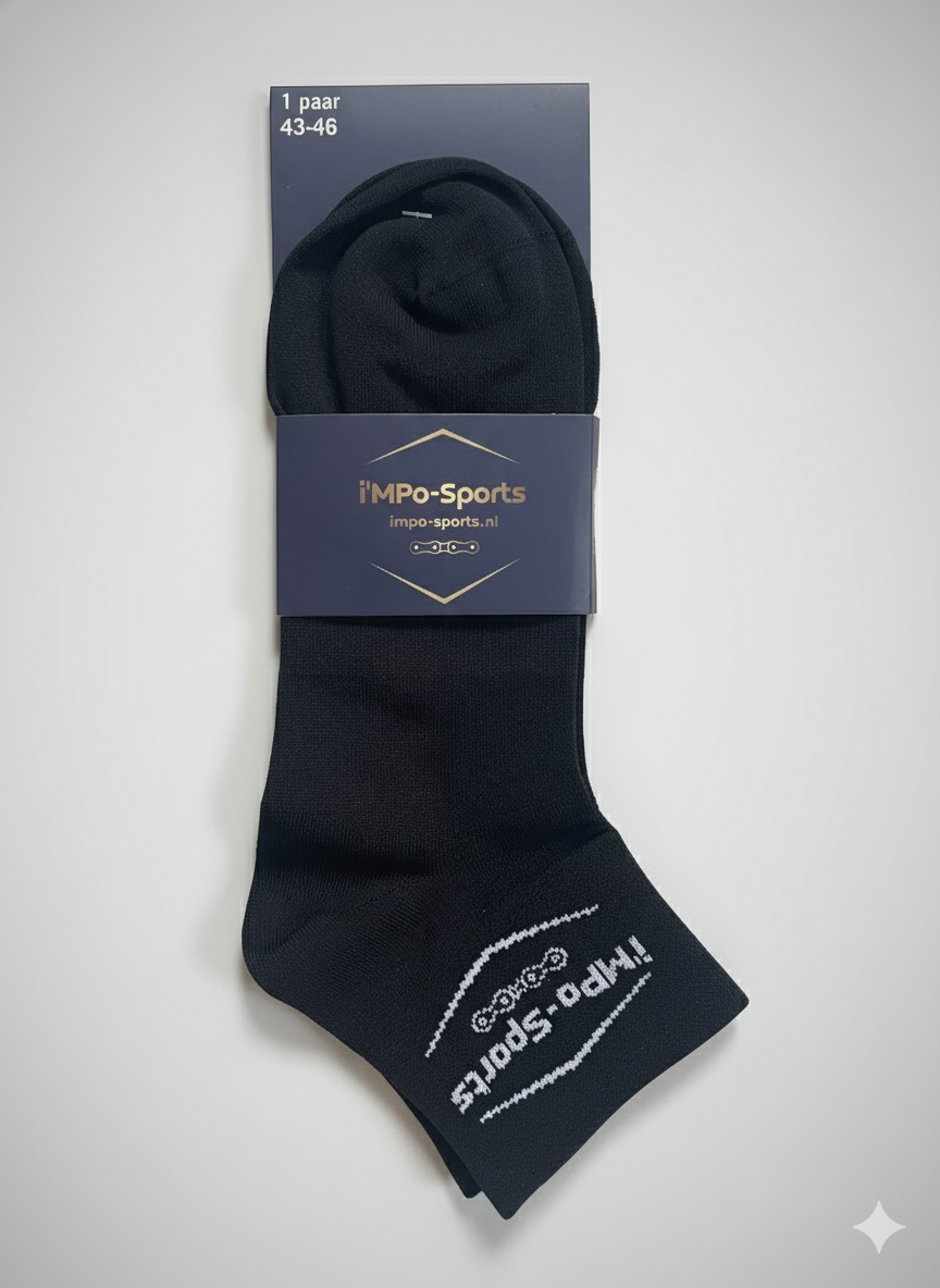 Deze i'MPo-Sportsokken hebben de klassieke lengte die bij de moderne wielerstijl hoort (niet te kort eniet te lang!). Ze zijn ultralicht en houden je voeten droog tijdens die zware klim of warme zomerrit.